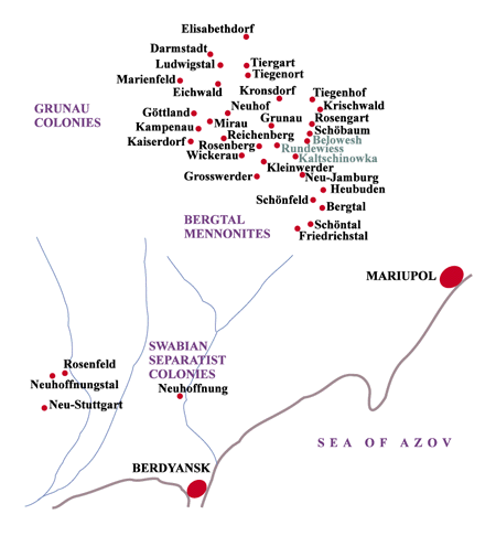 The Ollenburger ancestral villages of Belowesh, Rundeweise and Kaltchinowka. Click here to see a list of immigrants to these villages.